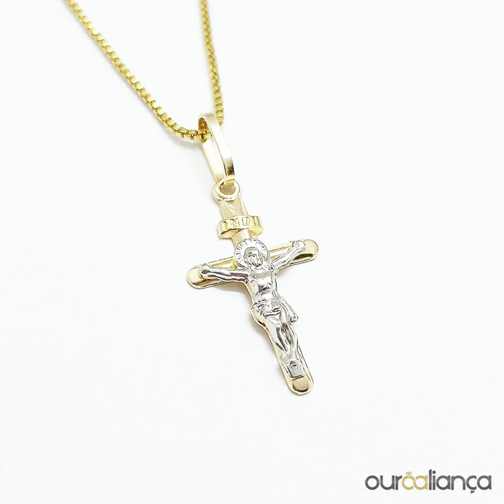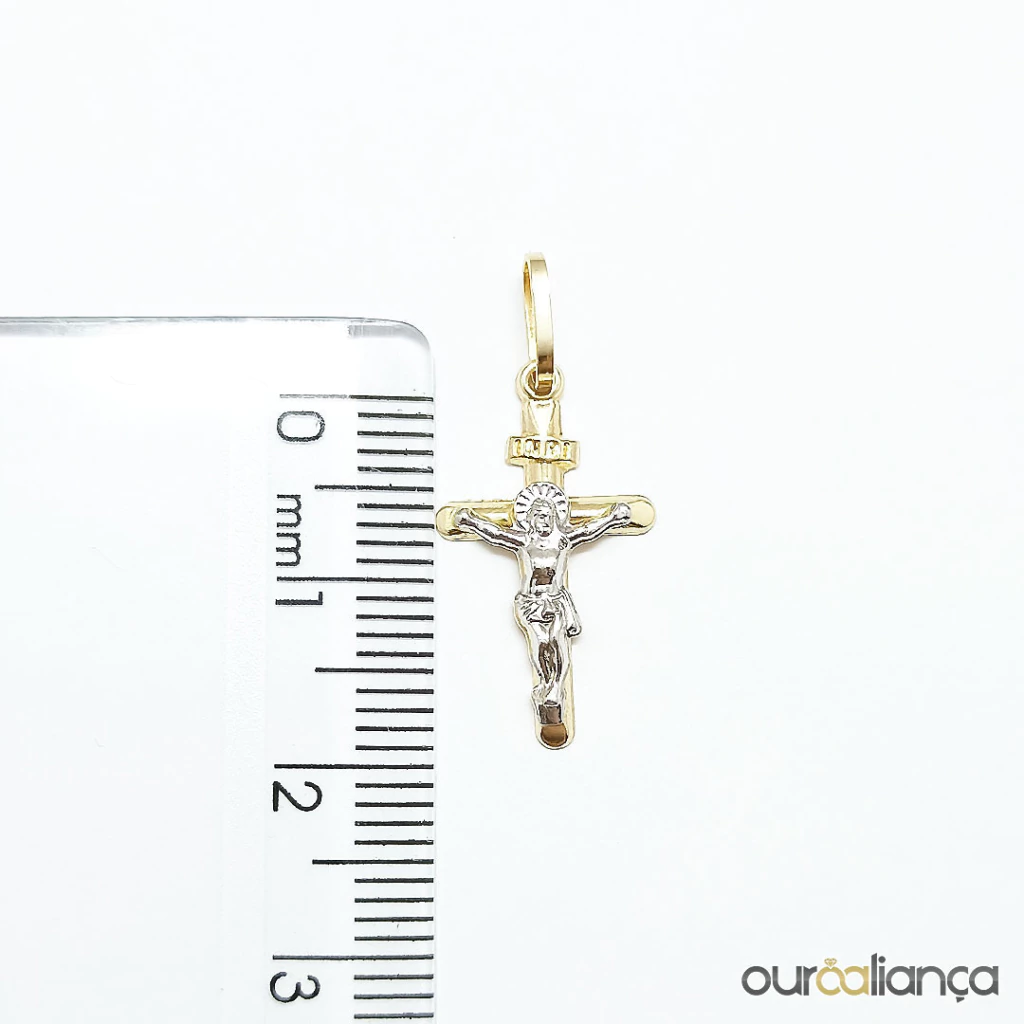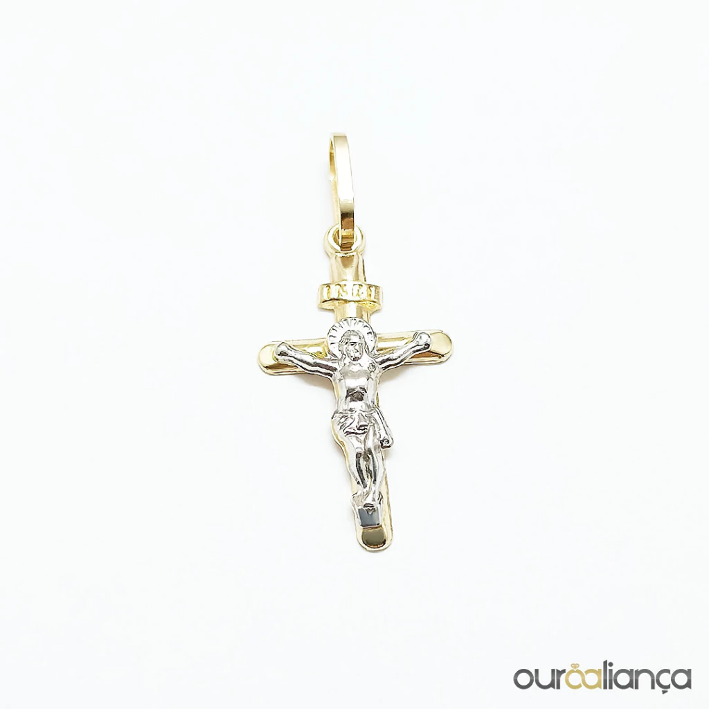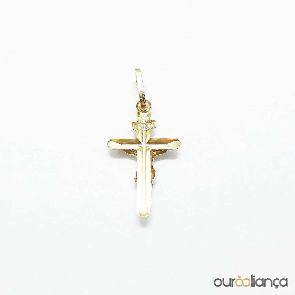 Pingente de cruz com Cristo pequeno, em Ouro 18K.