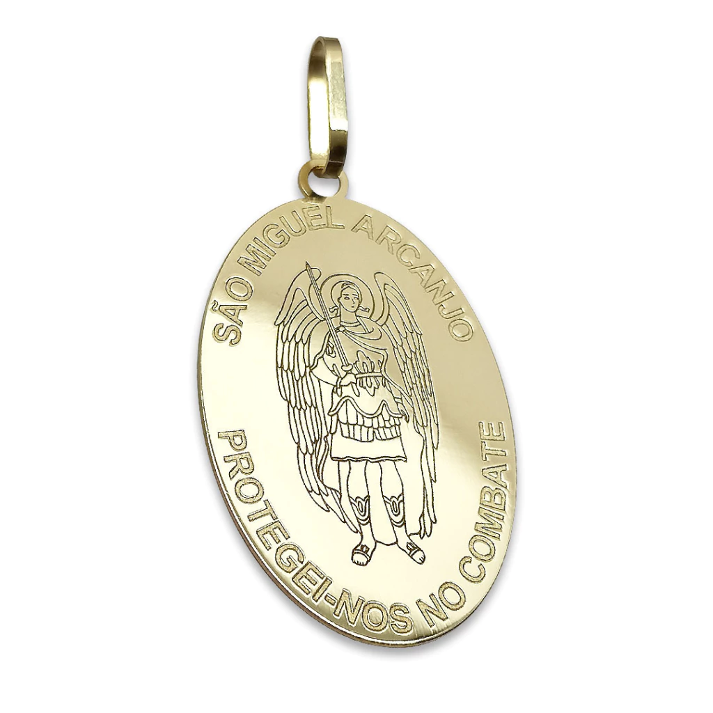 Pingente modelo medalha de São Miguel Arcanjo, em Ouro 18K.